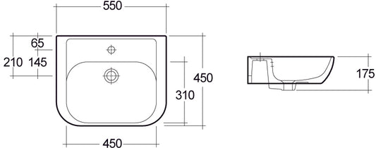 Vasque rectangulaire monotrou à encastrer 55 x 42 cm blanc