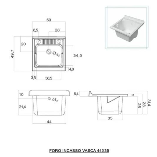 Lavatoio a Parete in Resina 39x39x24cm per Bucato e Giardino