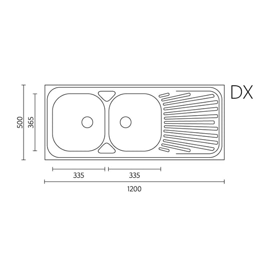 Lavello cucina due vasche con gocciolatoio dx acciaio da appoggio 50x120 cm(N127DX) EFFEZ