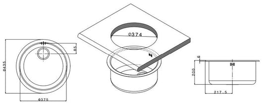 Évier de cuisine cockpit encastrable en inox diam. 43,5 cm