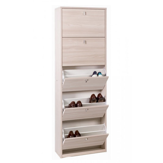 Étagère à chaussures fine et peu encombrante à cinq portes en Light Olmo 63x29x h190 cm