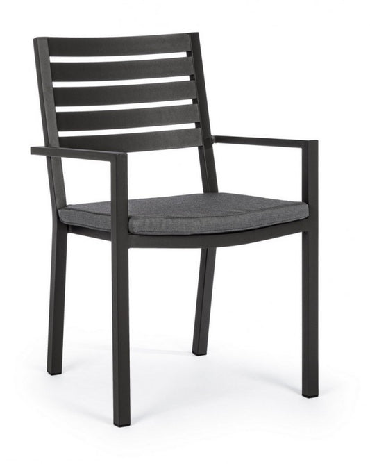 4x Chaise anthracite avec accoudoir et coussin en aluminium de style industriel