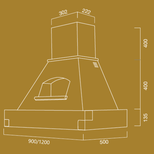 Hotte aspirante LALLA en inox blanc et structure en bois couleur tabac 120 cm