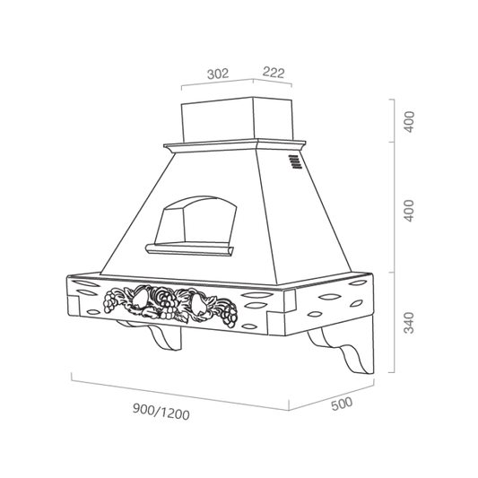 Hotte de cuisine rustique blanche DOLCE VITA avec cadre en bois incrusté couleur tabac 120 cm