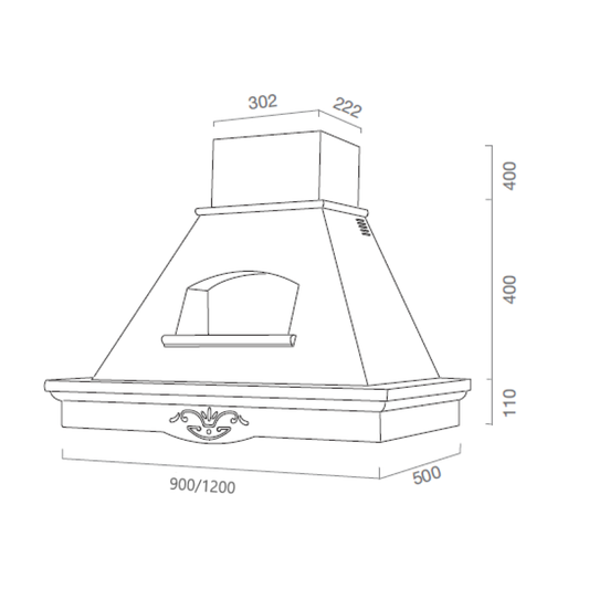 Hotte aspirante KATIA en inox blanc et structure en bois marqueté de 120 cm