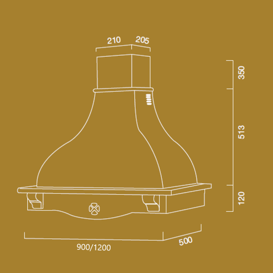 Hotte aspirante DIAMOND en inox cuivre antique 50 cm