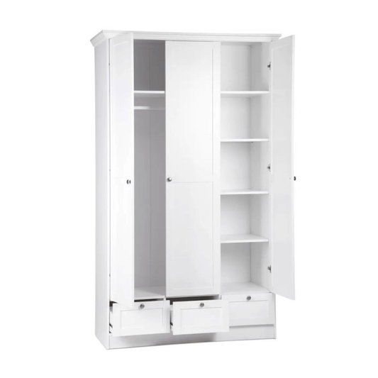 Armadio Landwood18 bianco tre ante e tre cassetti EFFEZ