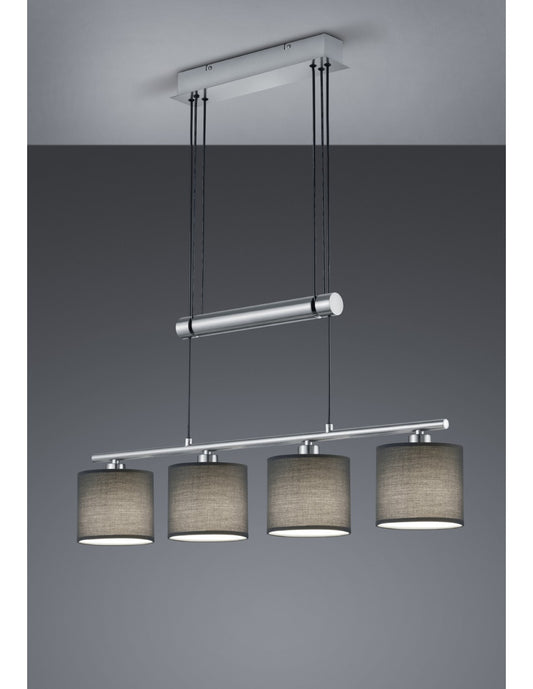 Garda Nichel Suspension 4 Abat-jour Tissu Gris L77 cm Trio Lighting