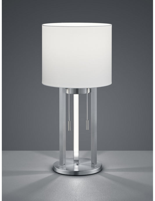 Lampe de table Nandor moderne, abat-jour en tissu blanc nickel, cadre d'éclairage Trio LED