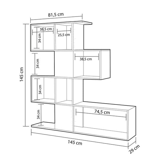 Etagère bibliothèque 4 niveaux 9 compartiments blanc gris 145x29xh.145 cm