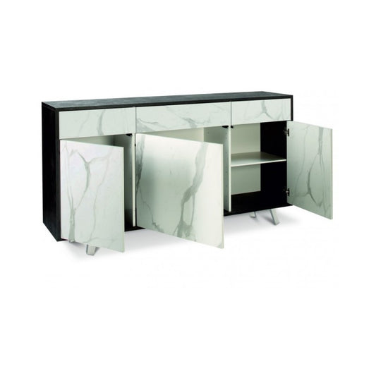 Buffet avec trois portes et trois tiroirs en marbre blanc Ossido 164x41x h92 cm