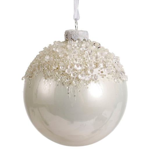 Boules de Noël blanches à paillettes assorties Ø8 cm
