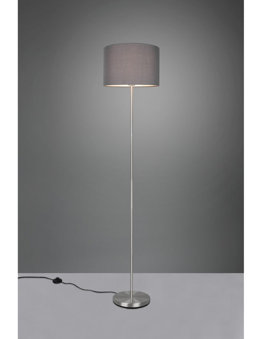Lampadaire Hôtel Abat-jour Nickel Tissu Gris Trio Lighting