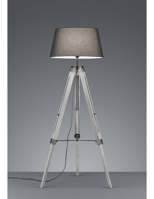 Lampadaire moderne trépied en bois trépied en tissu gris H143 cm Trio Lighting