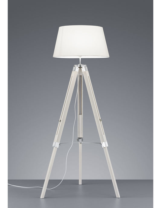 Lampadaire moderne trépied en bois trépied en tissu blanc H143 cm Trio Lighting
