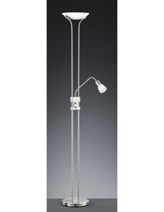 Lampadaire LED avec spot de lecture dimmable Santo II Nichel Trio Lighting