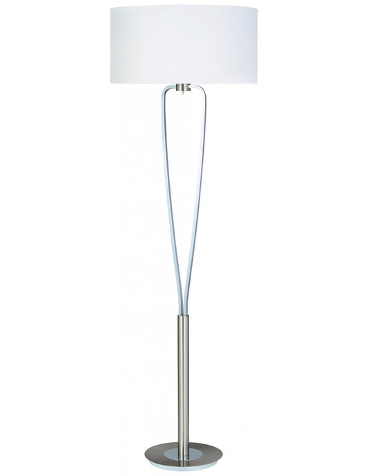 Lampadaire Arqué Hôtel 1xE27 Abat-Jour Nickel Tissu Blanc Trio Éclairage