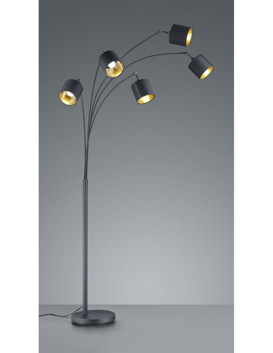 Lampadaire Tommy Nero 5xE14 Tissu Noir-Or H200 cm Trio Lighting