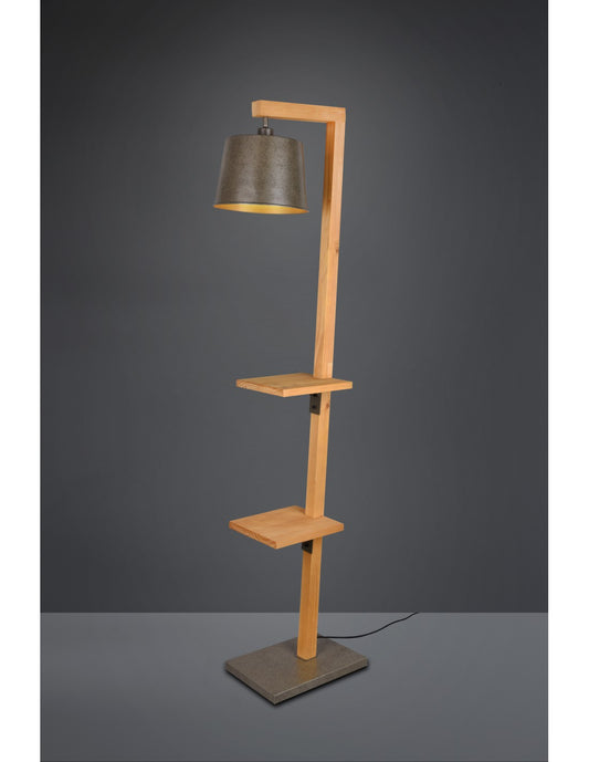 Lampadaire Vintage Etagères en Bois Abat-Jour Nickel Rodrigo Trio Lighting
