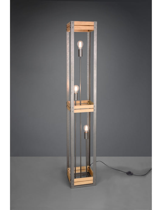 Lampadaire Vintage Rustique Bois Naturel Khan Nickel Antique H153 cm Trio Lighting