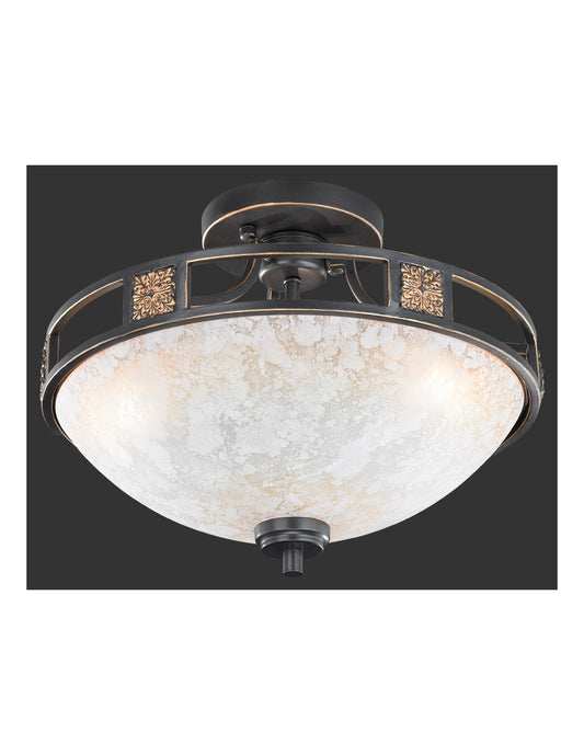 Plafonnier 3xE27 Quinta Ruggine Verre Albâtre Ø42 cm Trio Lighting