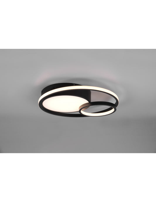 Plafonnier Granada Double Cercle Noir-Or LED 29w Dimmable L59 cm Trio Lighting