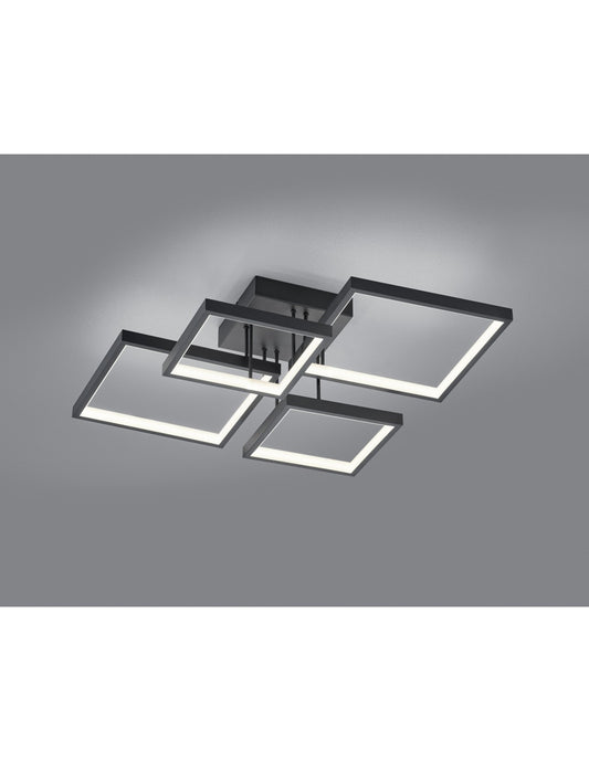 Plafonnier LED Sorrento 4 Carrés 52x52 cm Noir Trio Lighting
