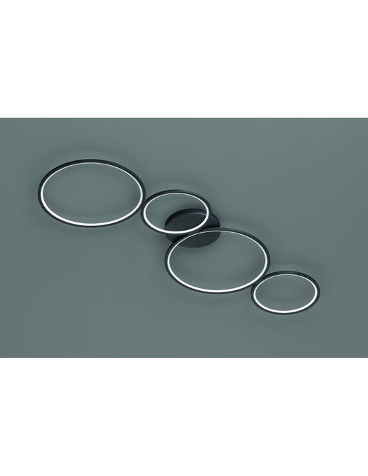 Plafonnier Rondo 4 Cercles LED Noir L97 cm Trio Lighting