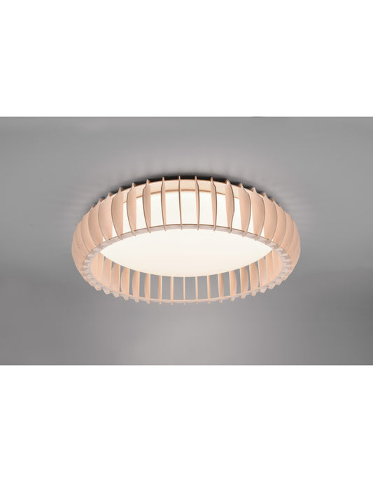 Plafonnier rond en bois blanc LED 38w variateur Monte Trio Lighting