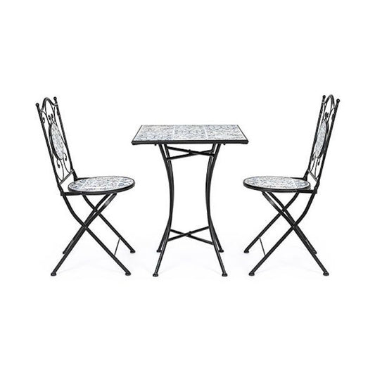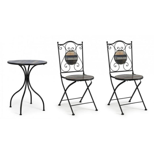 Ensemble de jardin table et 2 chaises avec décorations en céramique Huston