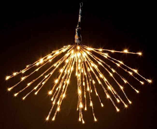 Bouquet de 32 branches LED avec 5 LED par branche. Les LED émettent une lumière classique, tandis que les branches sont de couleur champagne. Le câble d'alimentation a une longueur de 5 mètres et convient aussi bien à une utilisation intérieure qu'extérieure grâce à la certification IP44. Le transformateur inclus a une entrée de 220-240V 50Hz et une sortie de 24V DC 6VA.