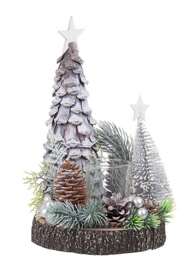 - Matériau : pomme de pin, verre, PVC, PE, étoile en contreplaqué, polystyrène, papier.