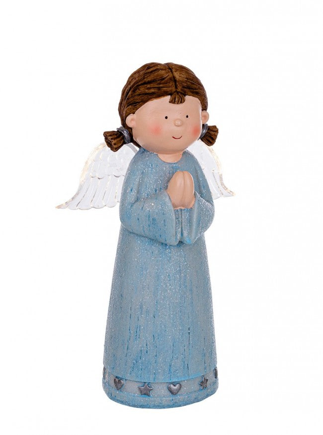 Realizzato in poliresina, l'angelo Jodene Azzurro C-Led è un'adorabile statuetta che aggiungerà un tocco di serenità alla tua casa. Questo angelo funziona a batteria e include 3 batterie alcaline LR44 per un'illuminazione duratura e senza problemi.