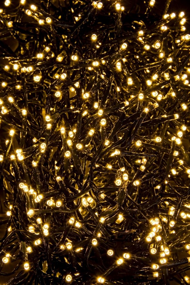 Chaîne de cluster 768Led, lumière classique, taille LED de 3 mm, non remplaçable. Fil vert, longueur totale du fil 7,5 m, longueur du câble d'alimentation 3 m, longueur du fil lumineux 4,5 m. Equipé d'une prise Schuko. 8 jeux de lumière avec mémoire. Pour usage interne-externe IP44. Avec boîte de couleur. Avec transformateur 36V6W.