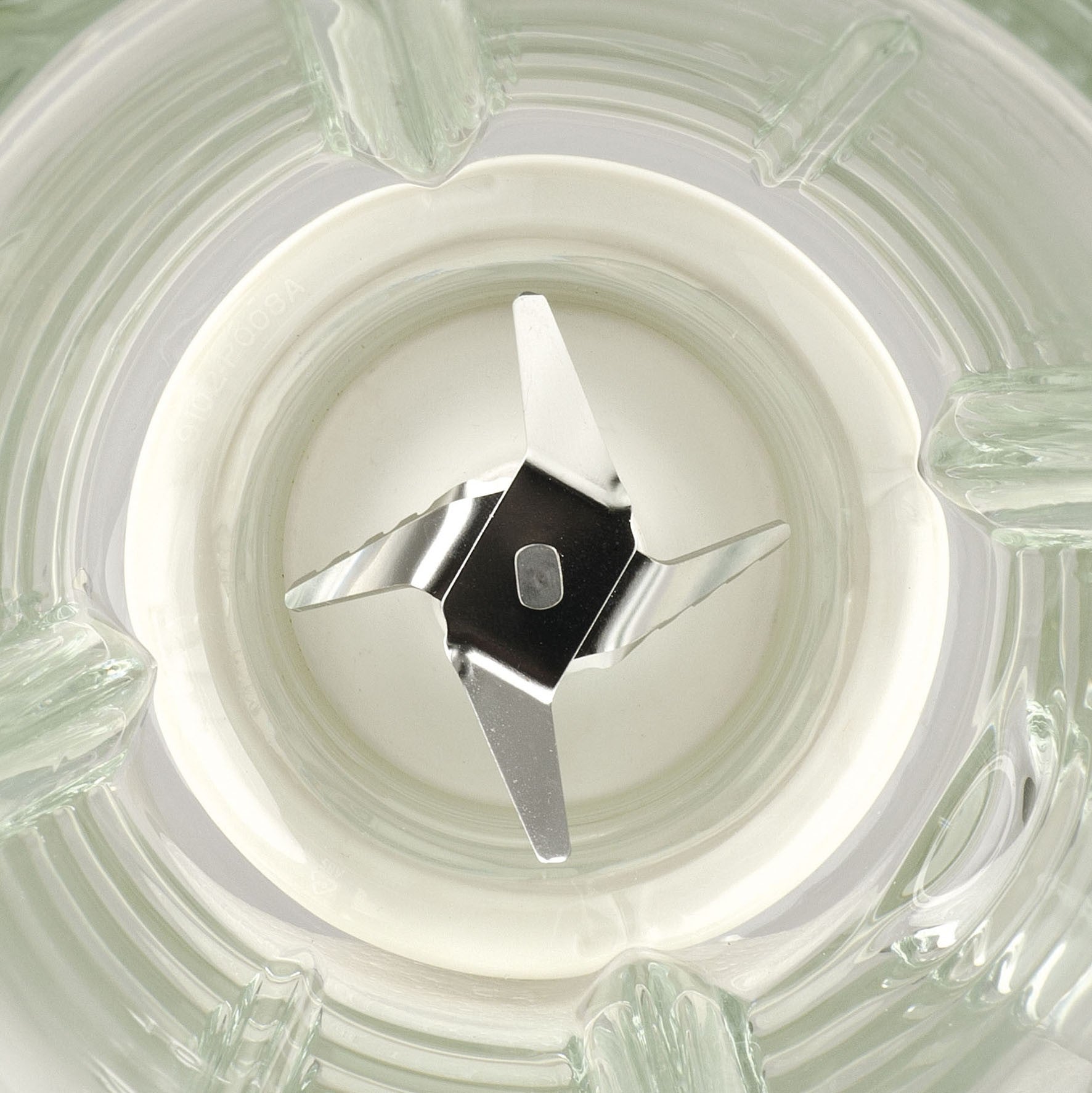 Equipé d'un bécher en verre gradué de 1,5 litre avec couvercle hermétique et poignée généreuse, le mixeur est équipé d'un système de protection qui empêche les démarrages accidentels pour garantir une sécurité d'utilisation maximale.