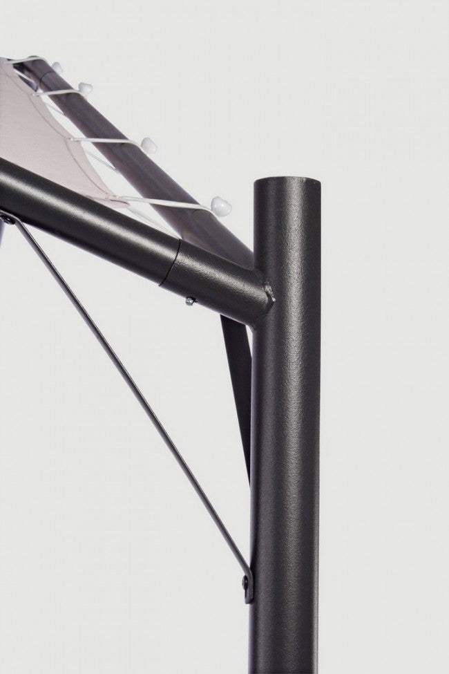 La structure du gazebo est composée de poteaux d'un diamètre de 58 mm, de traverses et d'un toit d'un diamètre de 42 mm. Cette construction robuste assure la stabilité du gazebo même dans les conditions météorologiques les plus défavorables. L'acier est traité pour résister aux agents externes, tels que l'humidité et la corrosion, tandis que la finition en poudre offre une protection supplémentaire et un look élégant.