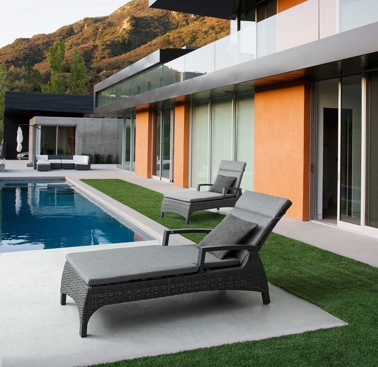 - structure en aluminium, thermolaqué (polyester), tissage de fibres synthétiques (multi-tailles) ;