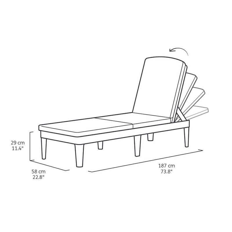 Réalisé avec une finition particulière qui reproduit le tissage typique du rotin, il est équipé d'un dossier inclinable dans 4 positions différentes.