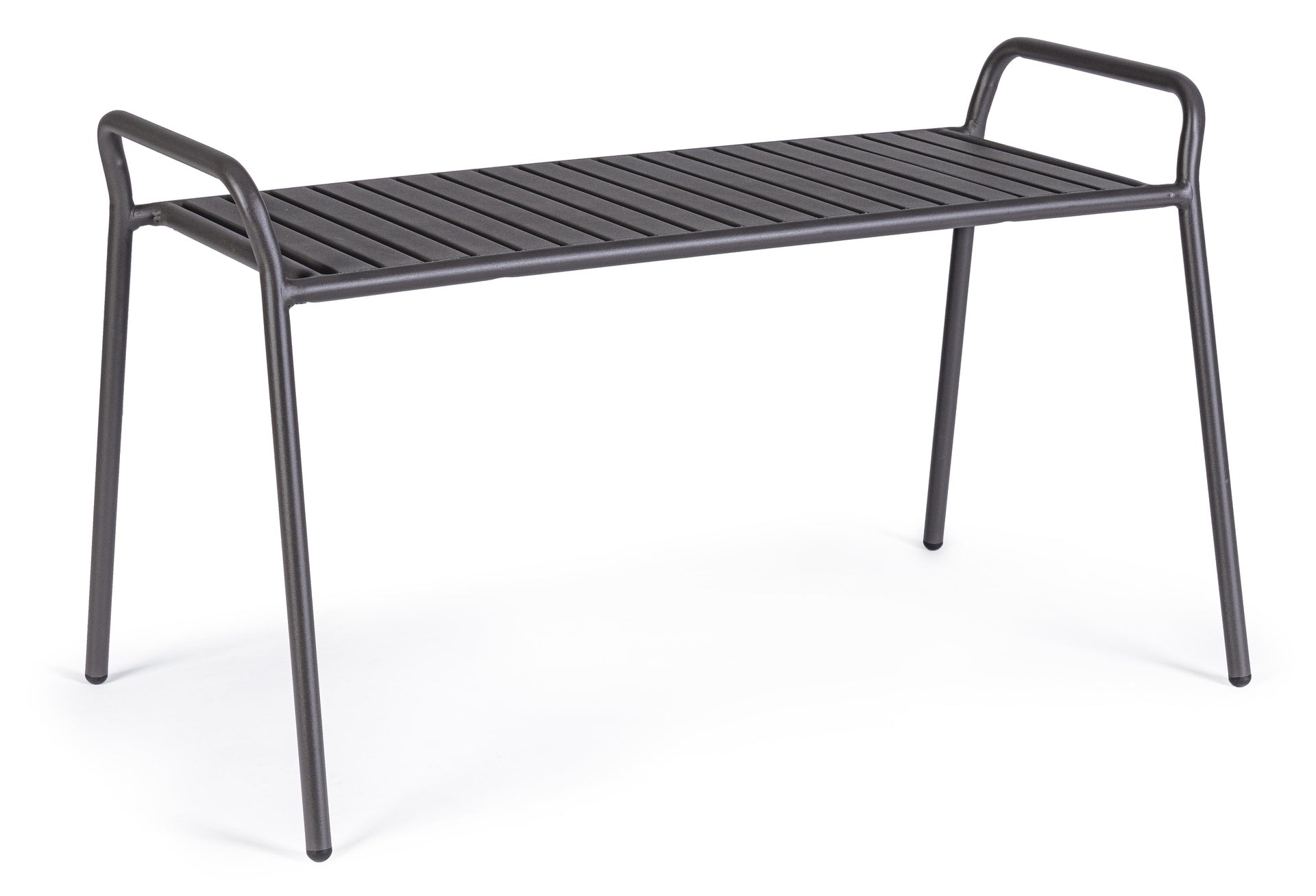 Acciaio trattato per esterno (E-coating) e verniciato a polvere (poliestere) con finitura opaca. La panca Dalya antracite è impilabile e viene fornita senza cartone di imballaggio.