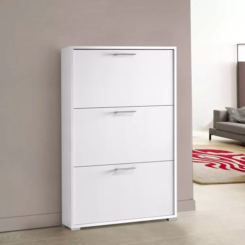 Étagère à chaussures avec trois portes pouvant accueillir jusqu'à neuf paires de chaussures blanc