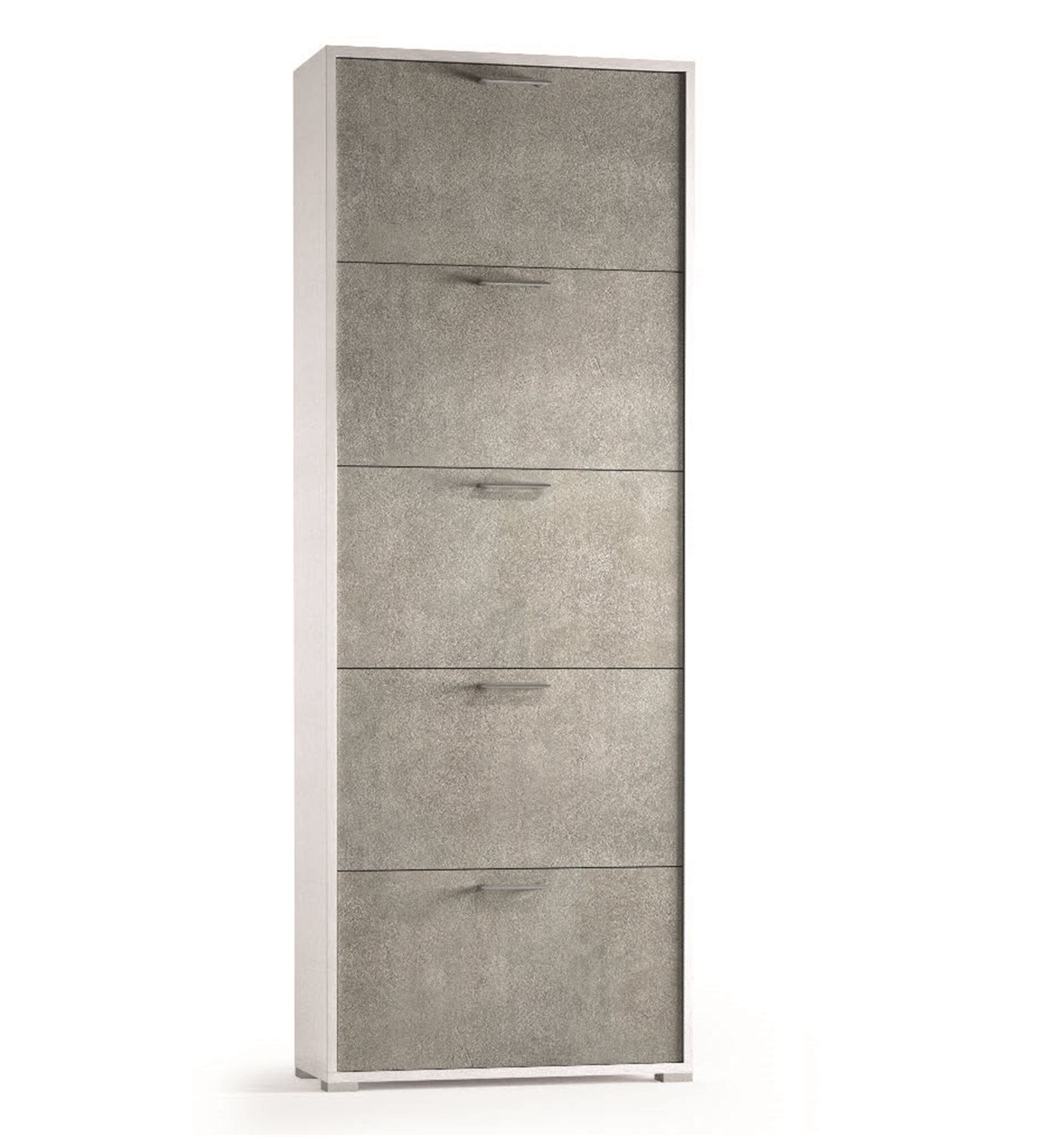 Meuble à chaussures double profondeur avec 5 portes pouvant accueillir jusqu'à 18 paires de chaussures blanc/ciment