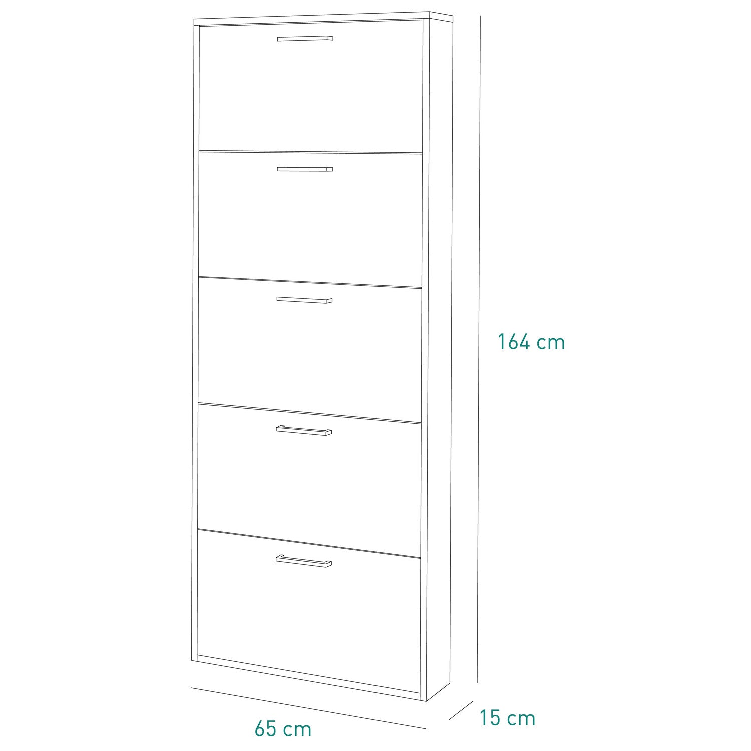 Scarpiera Slim Alta con 5 Ribalte - Fino a 15 Paia di Scarpe - Design Moderno - Dimensioni: 163.60x65.10x15.00 cm