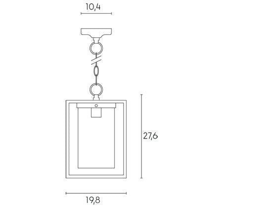 Suspension en aluminium moulé sous pression. Diffuseurs thermoplastiques transparents. Câble d'alimentation H05RN-F 3G0.75. Hauteur maximale de la lampe : 180 mm. Alimentation 230 V Classe de protection : IP43 Puissance maximale de la lampe : 25W