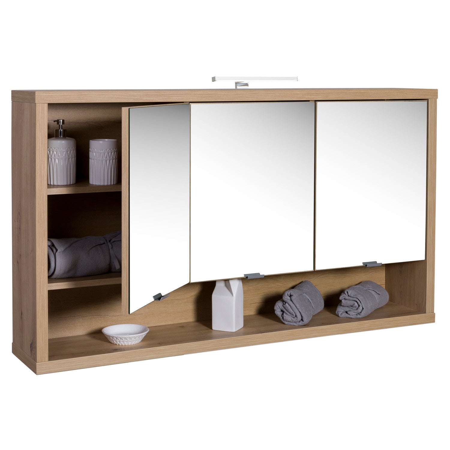 Specchiera Pensile con 3 Ante e 1 Vano, Luce LED