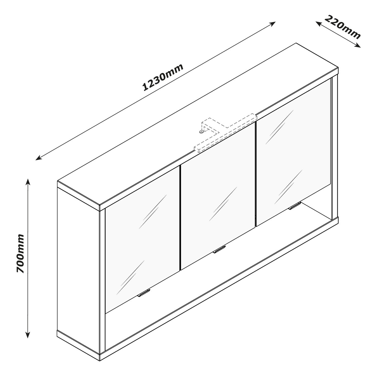 Specchiera Pensile con 3 Ante e 1 Vano, Luce LED, Dimensioni: 70x123x22 cm
